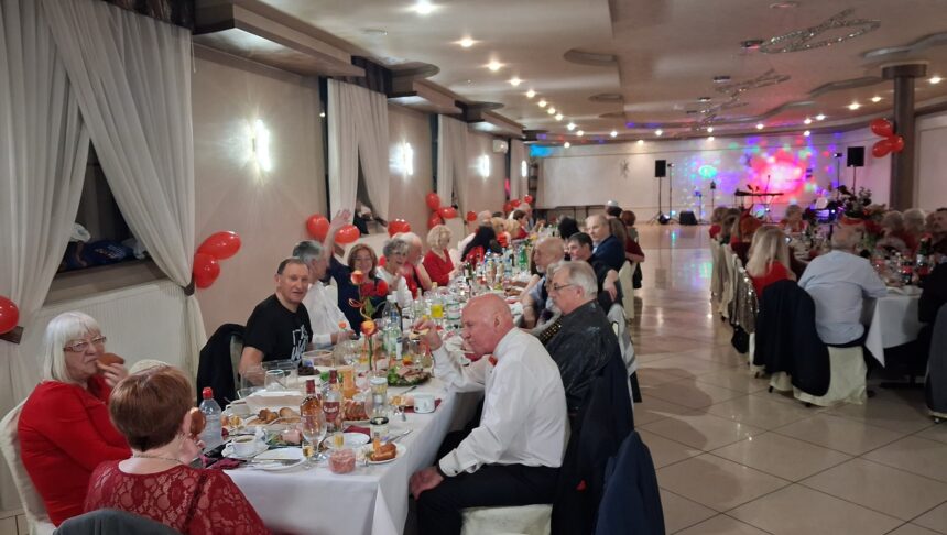 Panie trochę walentynkowo wystrojone, pięknie wyglądają, chociaż panowie też niczego sobie.Dobrze się bawiliśmy, z uśmiechami pokonaliśmy braki kondycyjne.Jedni nauczyli się, drudzy utrwalili dwa nowe, tańce od zajęć tańca w kręgu. Gratulujemy i dziękujemy.